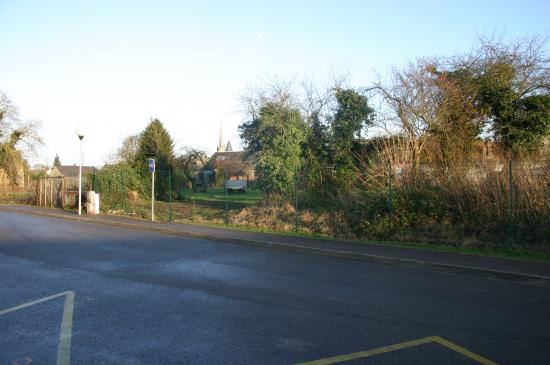 L'entrée sera là où il y a le panneau de sens de circulation (il faudra le faire déplacer, bein sûr). Et l'école est juste derrière le photographe.