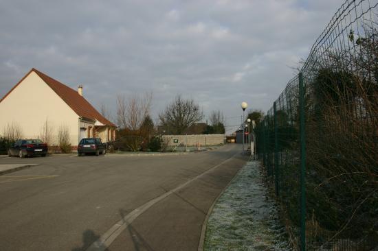 Entrée dans la rue par le bon sens de circulation A droite notre voisin presqu'en face, ensuite l'école. A gauche notre voisin au super potager et ensuite ground 0.