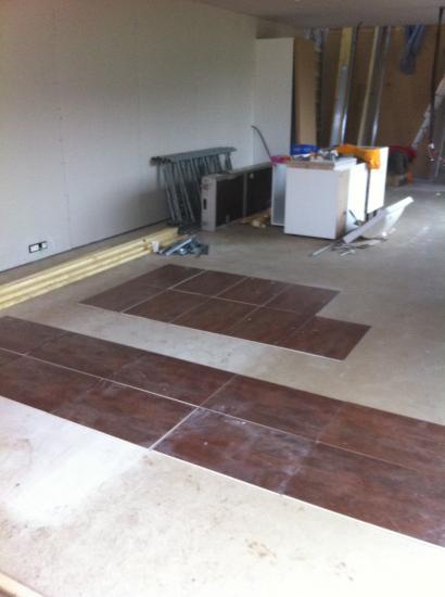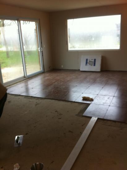 Ensuite, poser le carrelage: les grands carreaux, c'est plus dur.