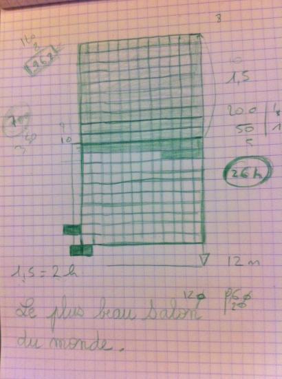 Problème: soit un salon de 20 mètre de long, un rangée fait 12 carreaux, il faut 2 heures pour faire une rangée et demi, combien de temps faut-il pour poser le carrealge.