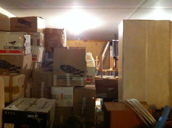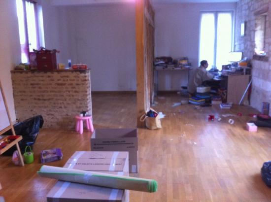 De l'autre, ça se remplit! (notez l'échelle, toujours en bonne place au dernier plan: c'est par là que sont passés les lits, les armoires, les cartons.)