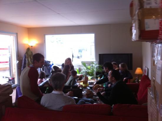 11h05: arrivée de ... Paul!! qui a pris l'avion, non sans avoir failli loupé son bus, traversé une quatre voies avec 70 cm de neige en tennis, fait deux heures de route depuis la Belgique, bref, un héro!!