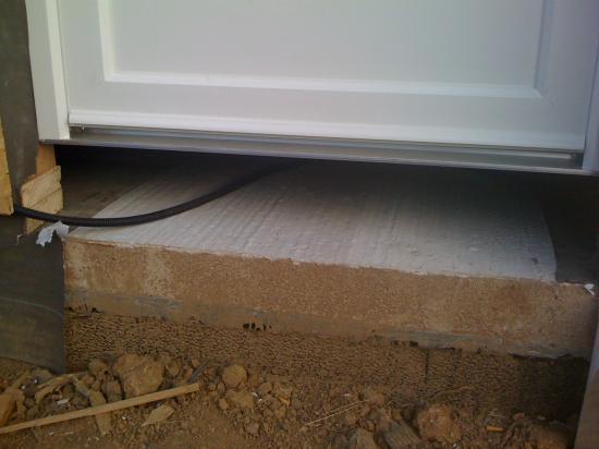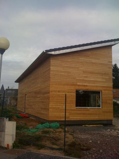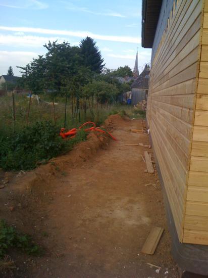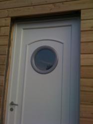 Là, c'est l'arrivée de la porte d'entrée, bô bateau la maison bois avec le hublot et le bois encore si jaune!!