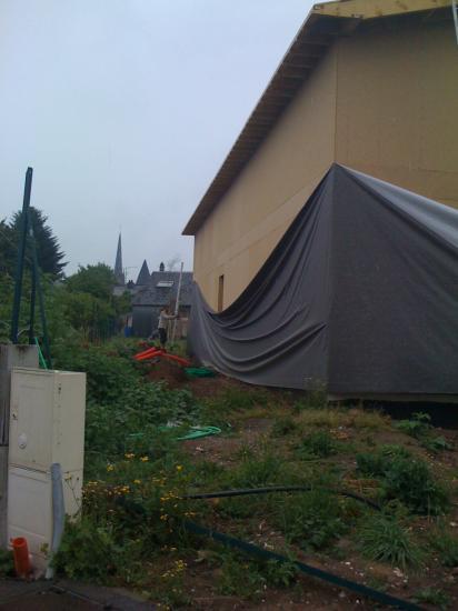 Mis en place du pare-pluie (utile en Picardie...!!!), sous la pluie d'ailleurs, un vrai moment de bonheur.